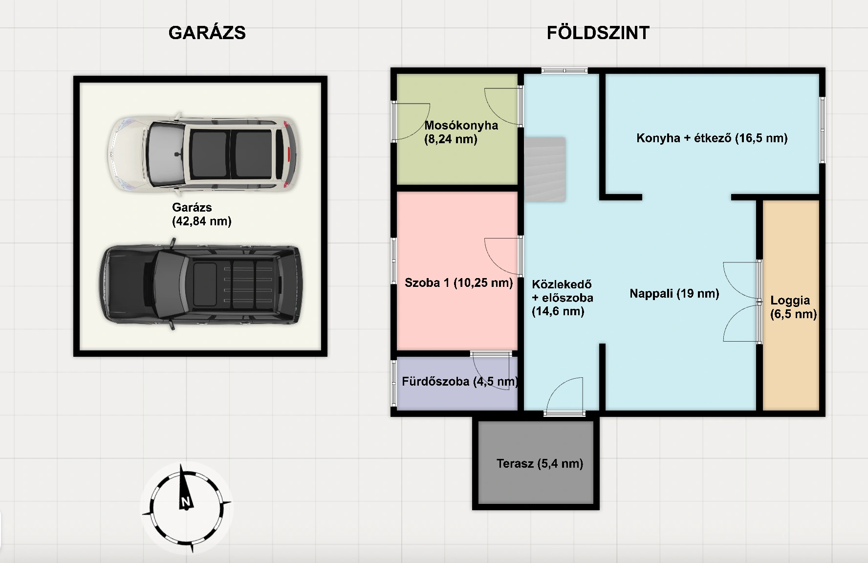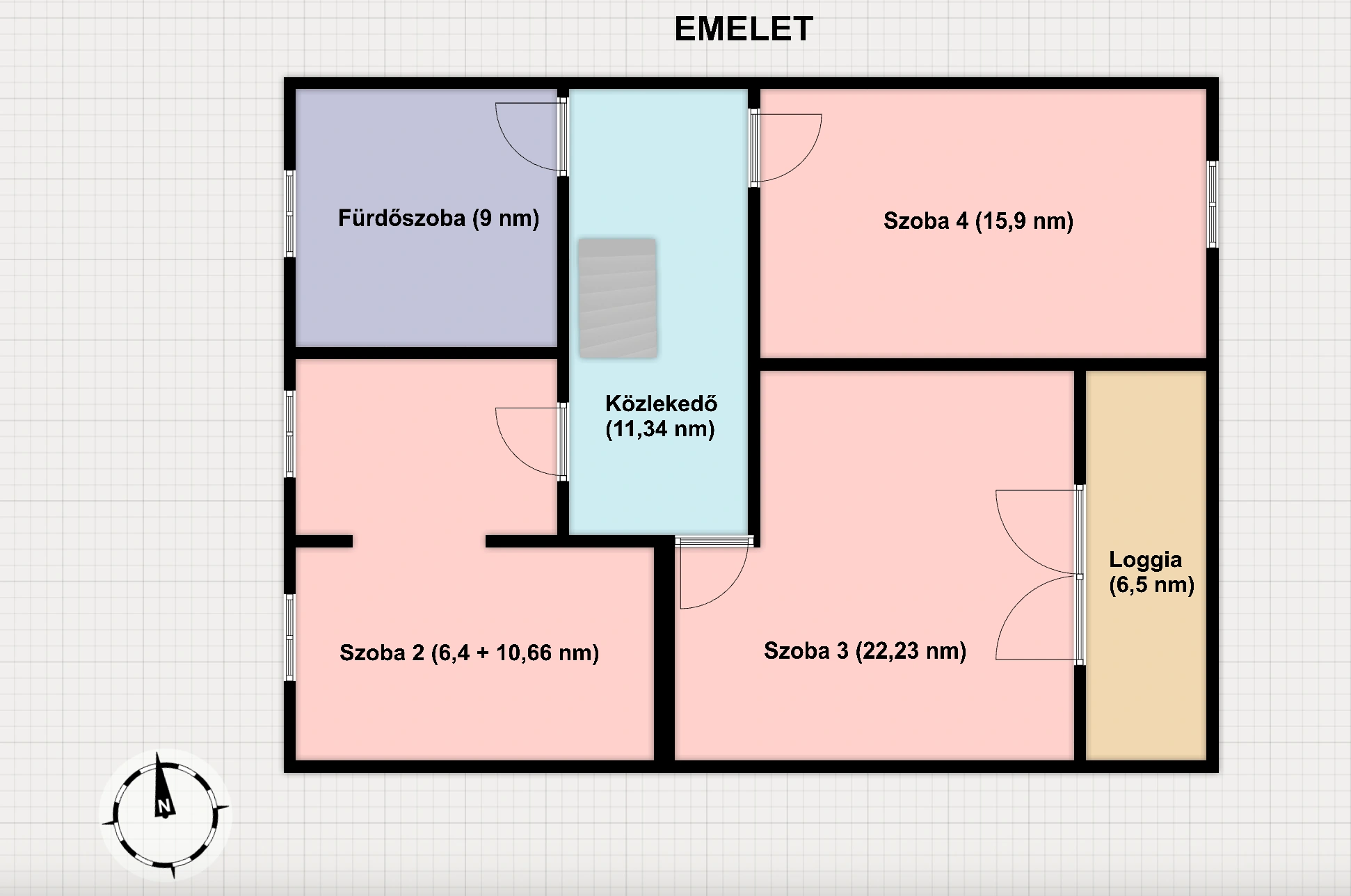 - 2 szint + két loggia (170 m² összesen)